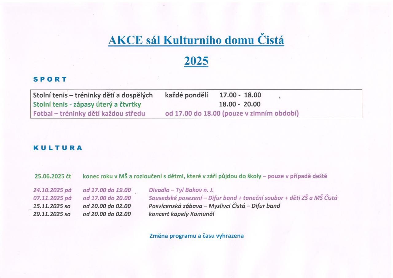 Akce v KD - do konce roku 2025