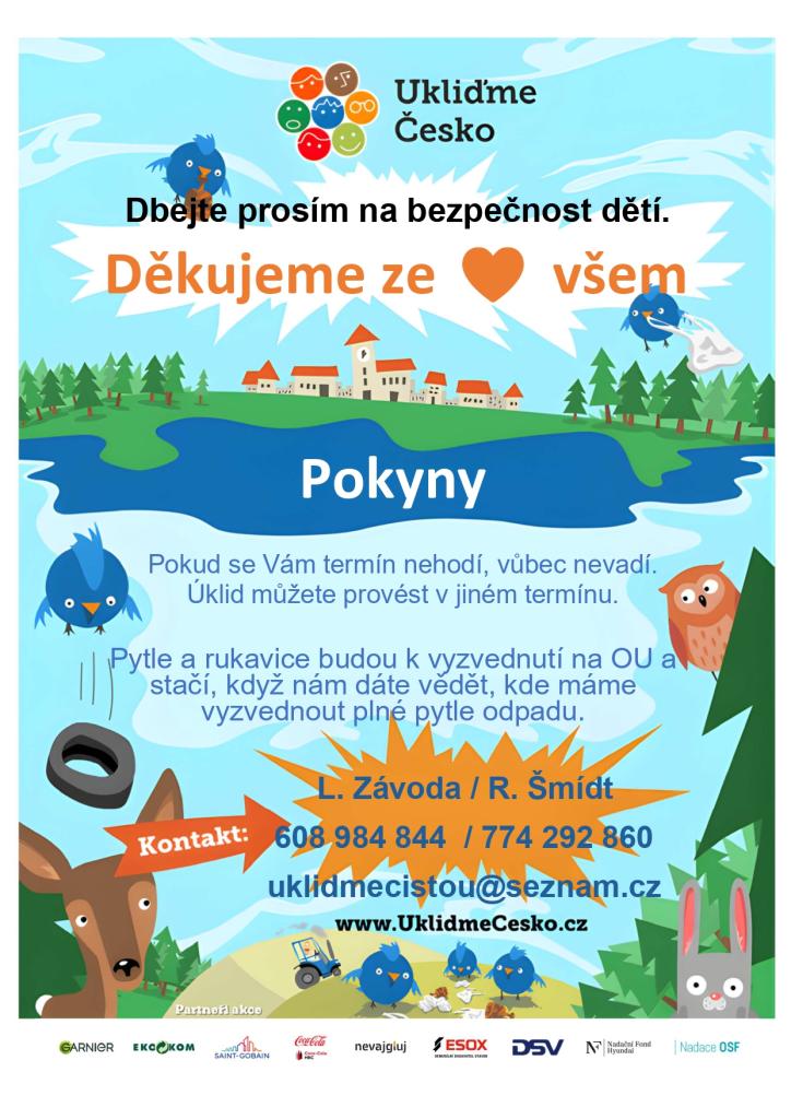 Pytle a rukavice budou nechány i na OÚ, pokud někomu nebude vyhovovat termín úklidu, aby si je vyzvedl a pomohl - může uklidit jakoukoliv část.
