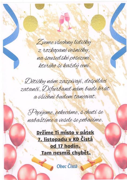 k tanci a poslechu zahraje Difurband občerstvení připraveno